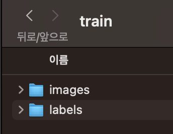 이 과정을 3개 영상 모두 작업을 해주셔야합니다. 이렇게 하면 이제 YOLO를 훈련시킬 준비과정은 끝입니다. 저는 아래와 같이 준비하였고 반드시 지켜야할 부분은 images와 labels로 구분되어 있지만 훈련을 위한 파일이름은 같아야합니다.