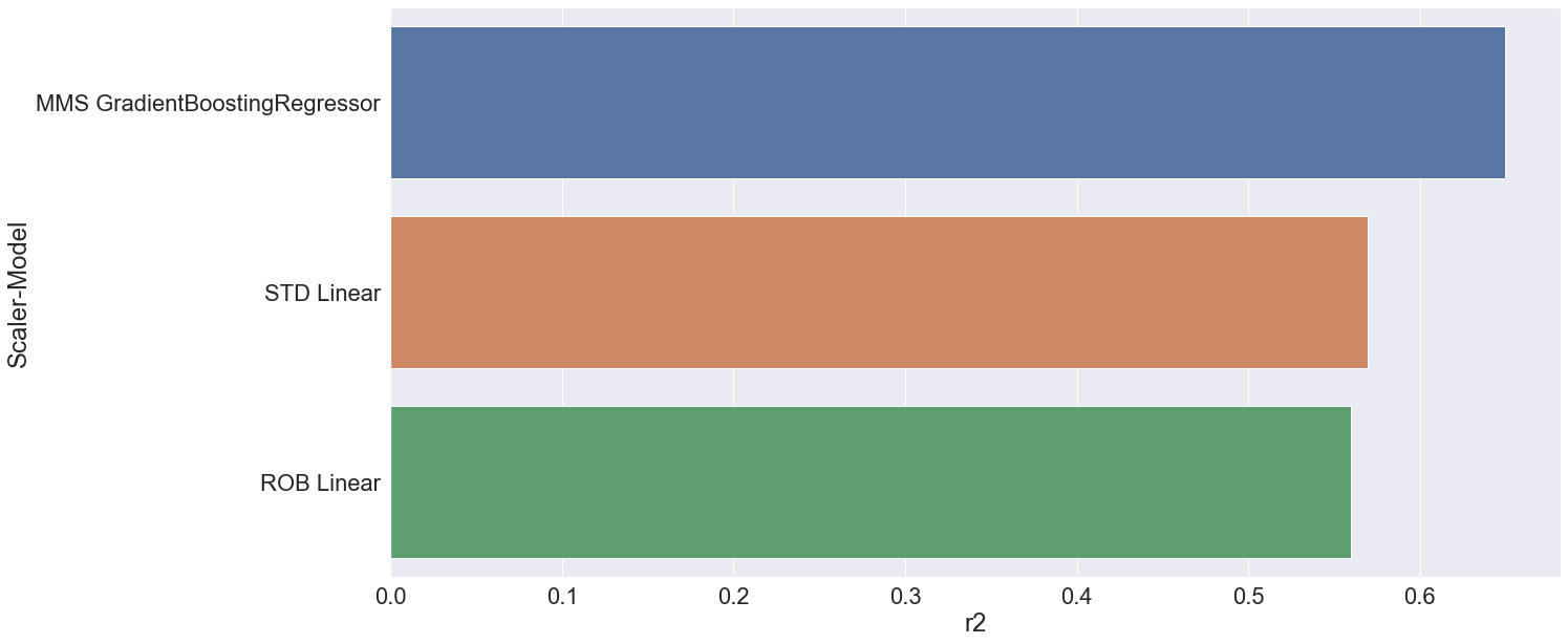 ax = sns.barplot(y="Scaler-Model", x="r2", data=output)