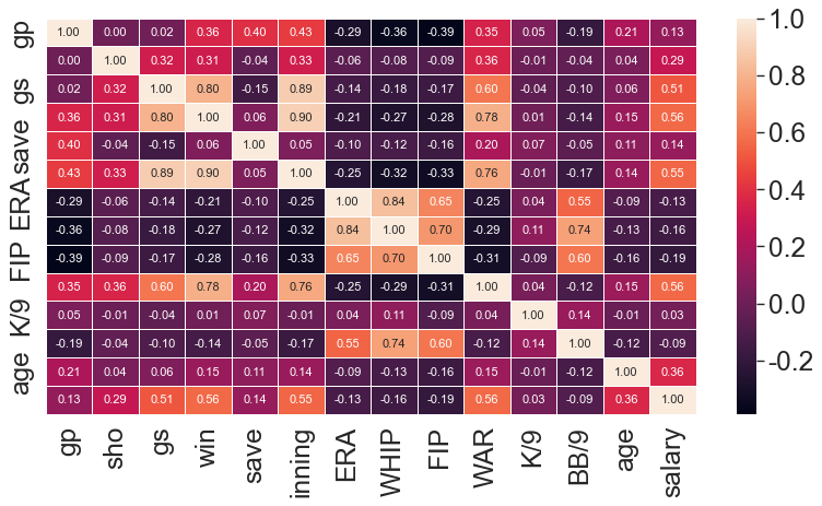 야구에 대해서 관심이 많은게 아니었기 때문에 어떤 지표들이 투수를 평가하는데 좋은 지표인가에 대해서 알 수 없었기 때문에 선수에 대한 평가 지표를 제공해주는 곳에서 모든 데이터를 우선 불러오고 사용할 지표들을 걸러내기로 정했다. 선수에 대해서 평가하기 위해서는 개인의 데이터도 중요하지만 소속팀의 지표도 중요하다고 생각되어서 Kagle에 정리되어 공유된 팀별 소속 투수들의 평균 데이터가 있어 가져와 사용하기로 하였다.