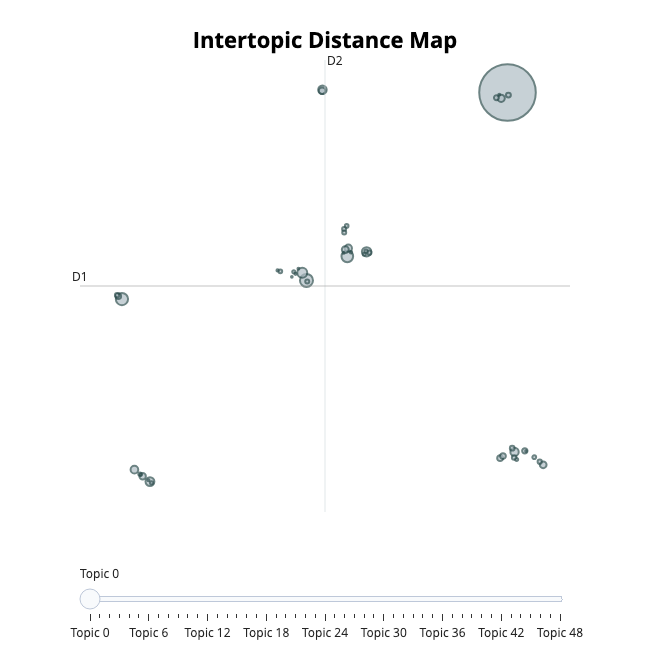 model = BERTopic(embedding_model= MODEL_NAME, vectorizer_model=vectorizer, nr_topics=50, top_n_words=10, calculate_probabilities=True)