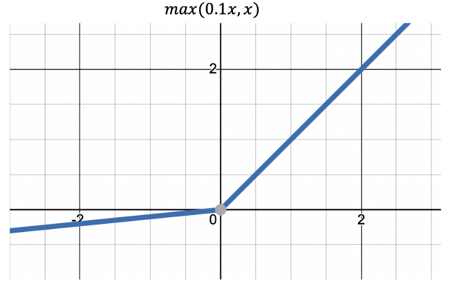 Leaky ReLU함수는 아래와 같은 형태로 음수일때 결과값이 매우 작은 값을 갖도록 설정합니다. 이를 통해 0으로 수렴하는 문제를 해결하고 ReLU함수에서 발생하는 뉴런이 죽는 현상을 방지합니다. 이러한 기울기 소실과 관련된 내용은 은닉층의 활성화 함수를 설정할때 중요하게 고려해야할 부분이라고 할 수 있겠습니다.